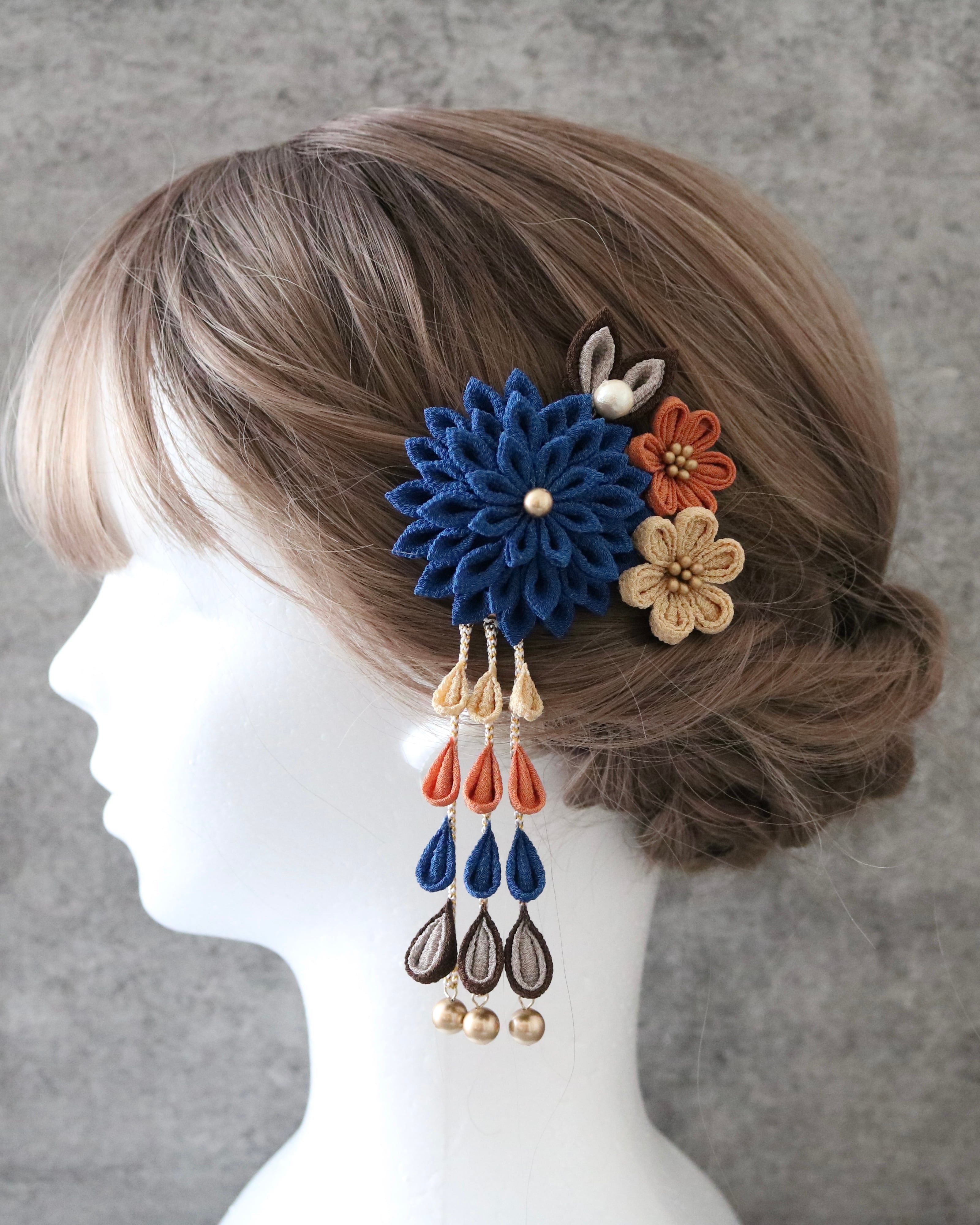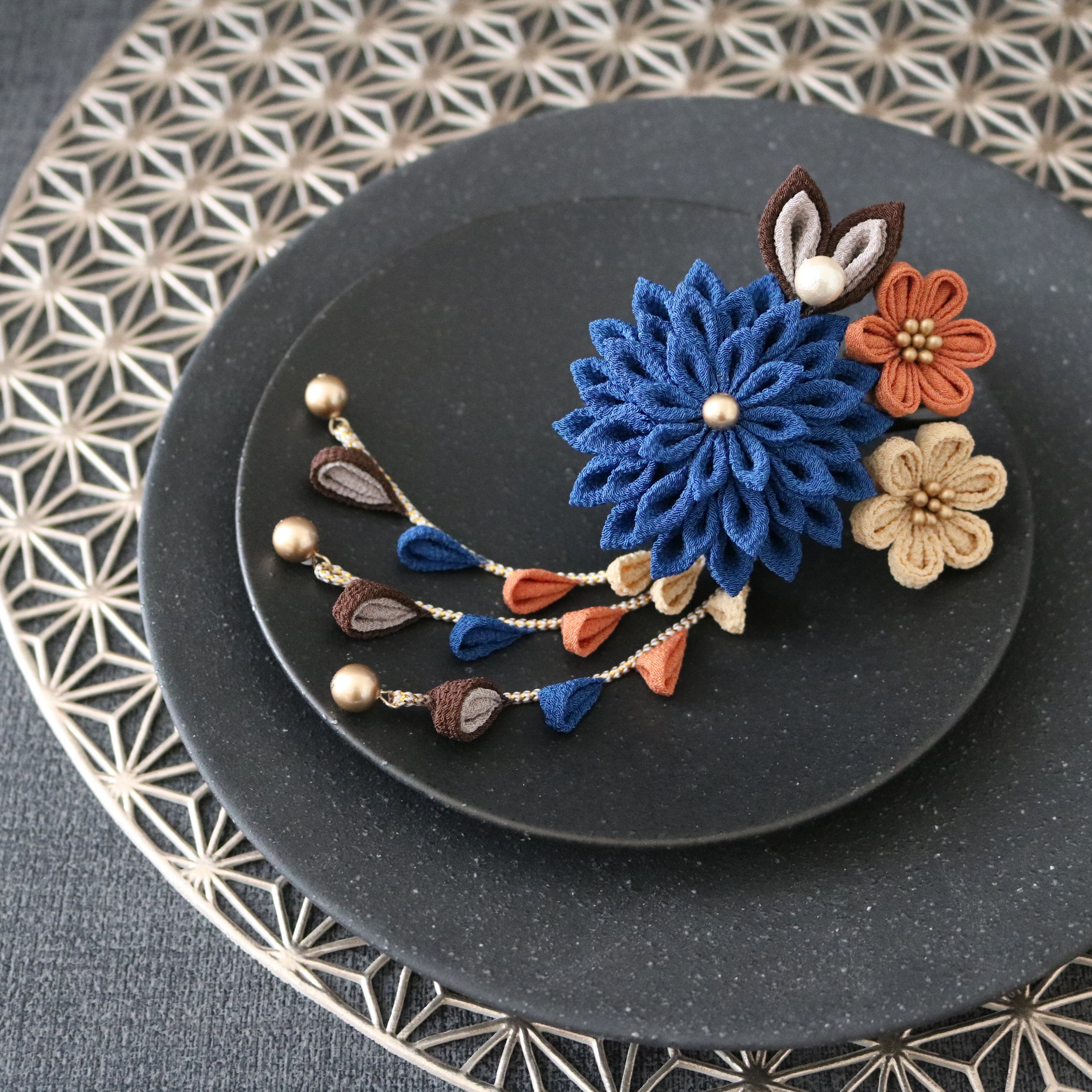 ネイビー*下がり付き2wayかんざし*つまみ細工