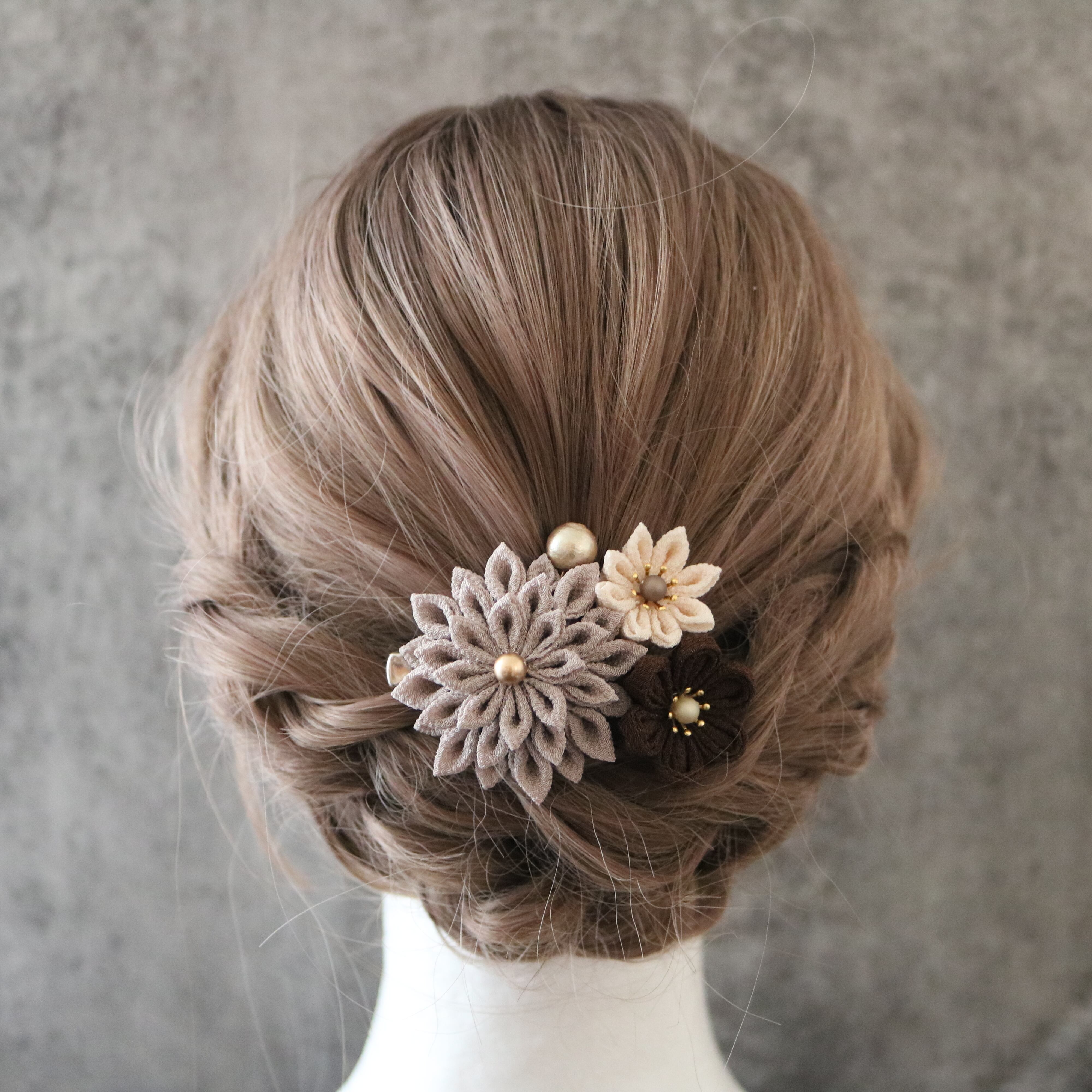 『ナチュラル』レトロモダンな髪飾り*つまみ細工