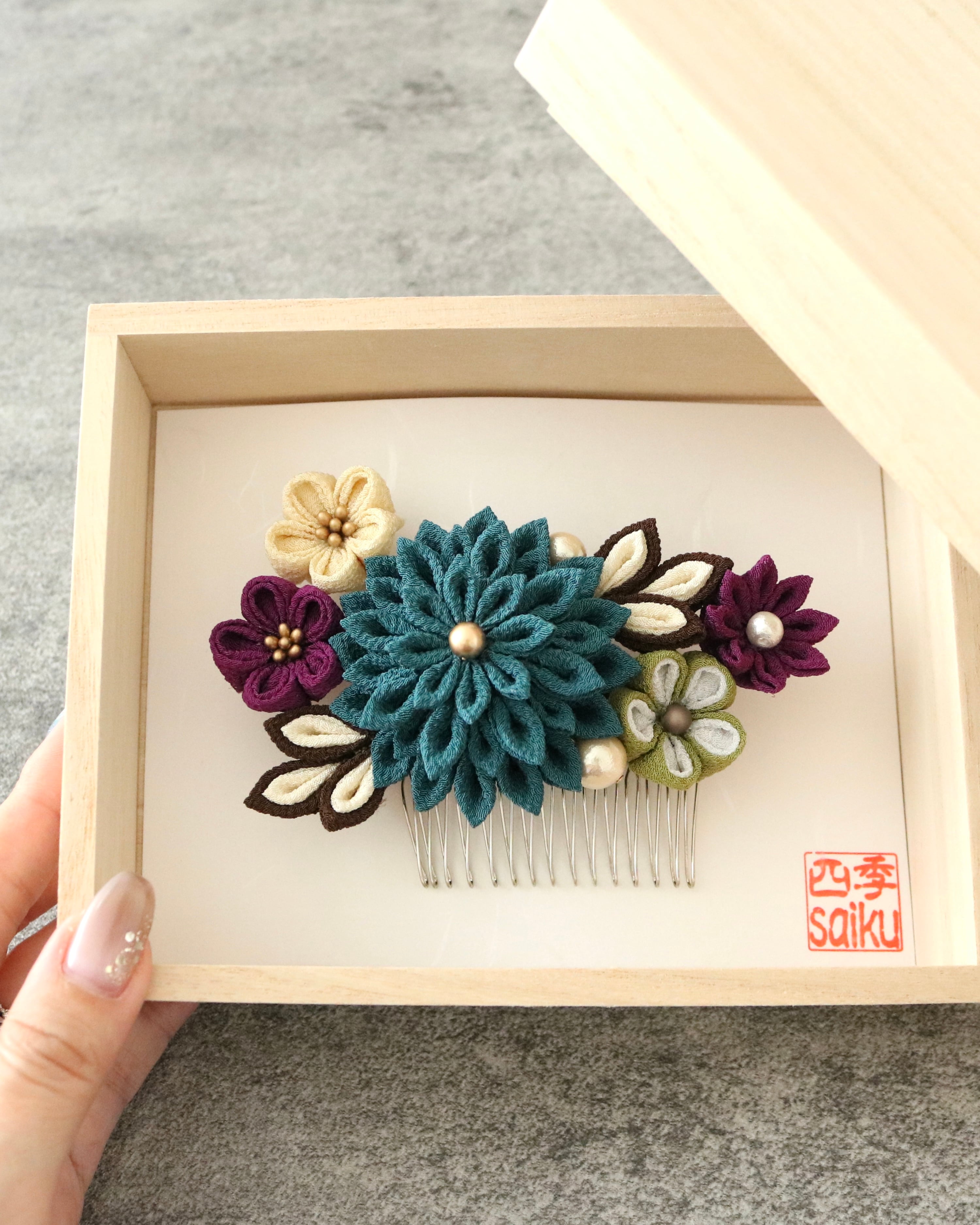 【青碧-せいへき-】大人色のつまみ細工ヘアコーム* 卒業式や浴衣の髪飾りに *かんざし*