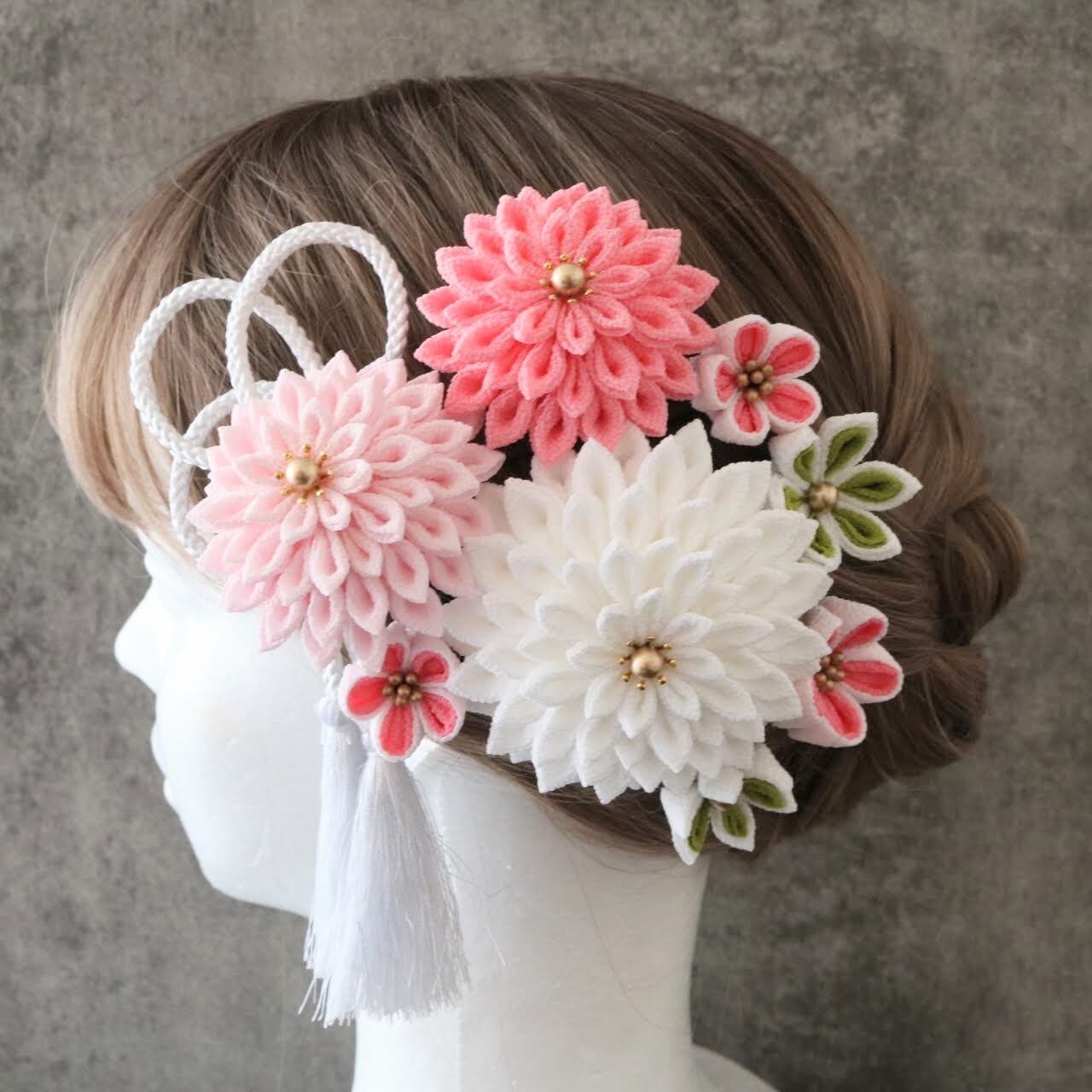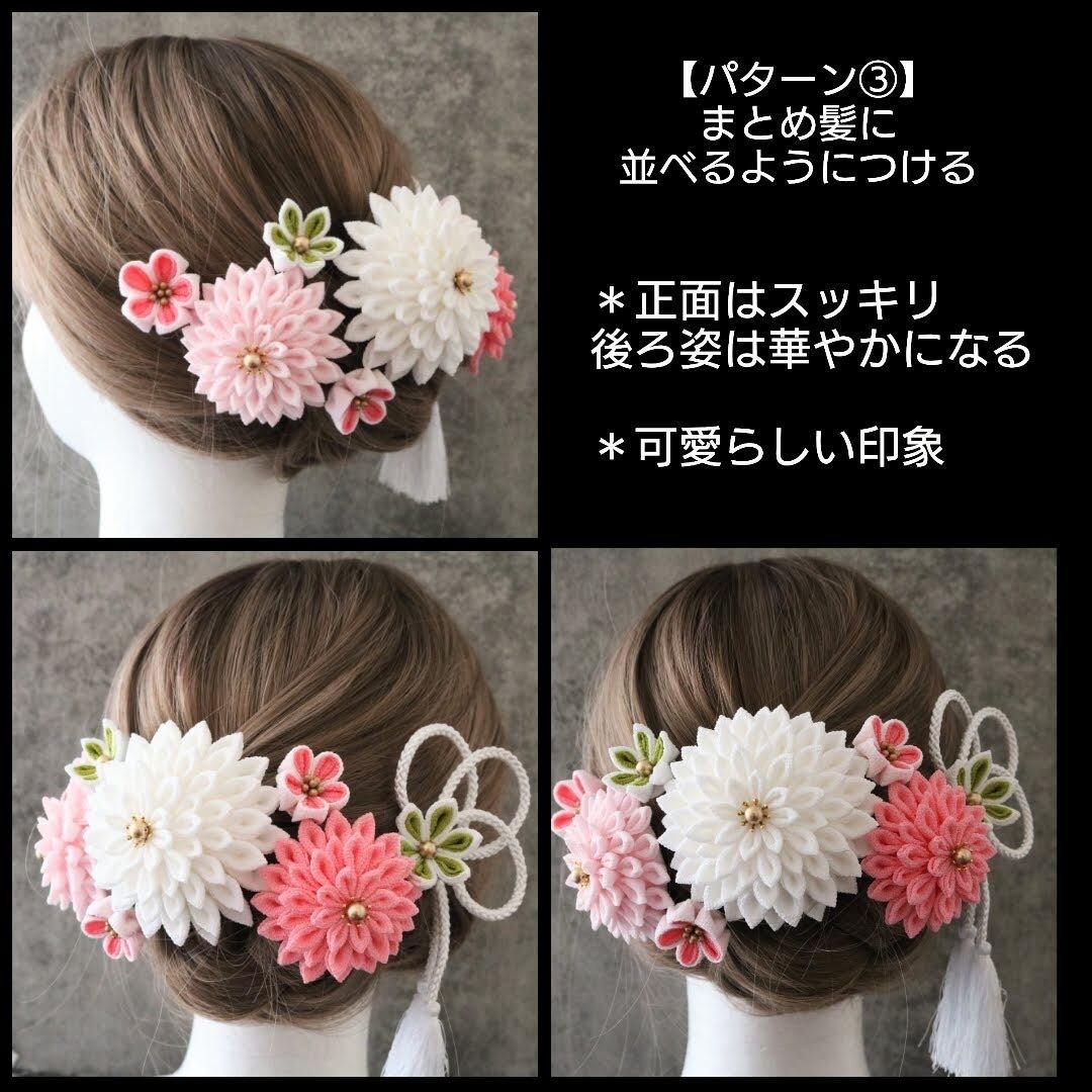 ボリュームのある可愛らしい色合いの髪飾りセットです。