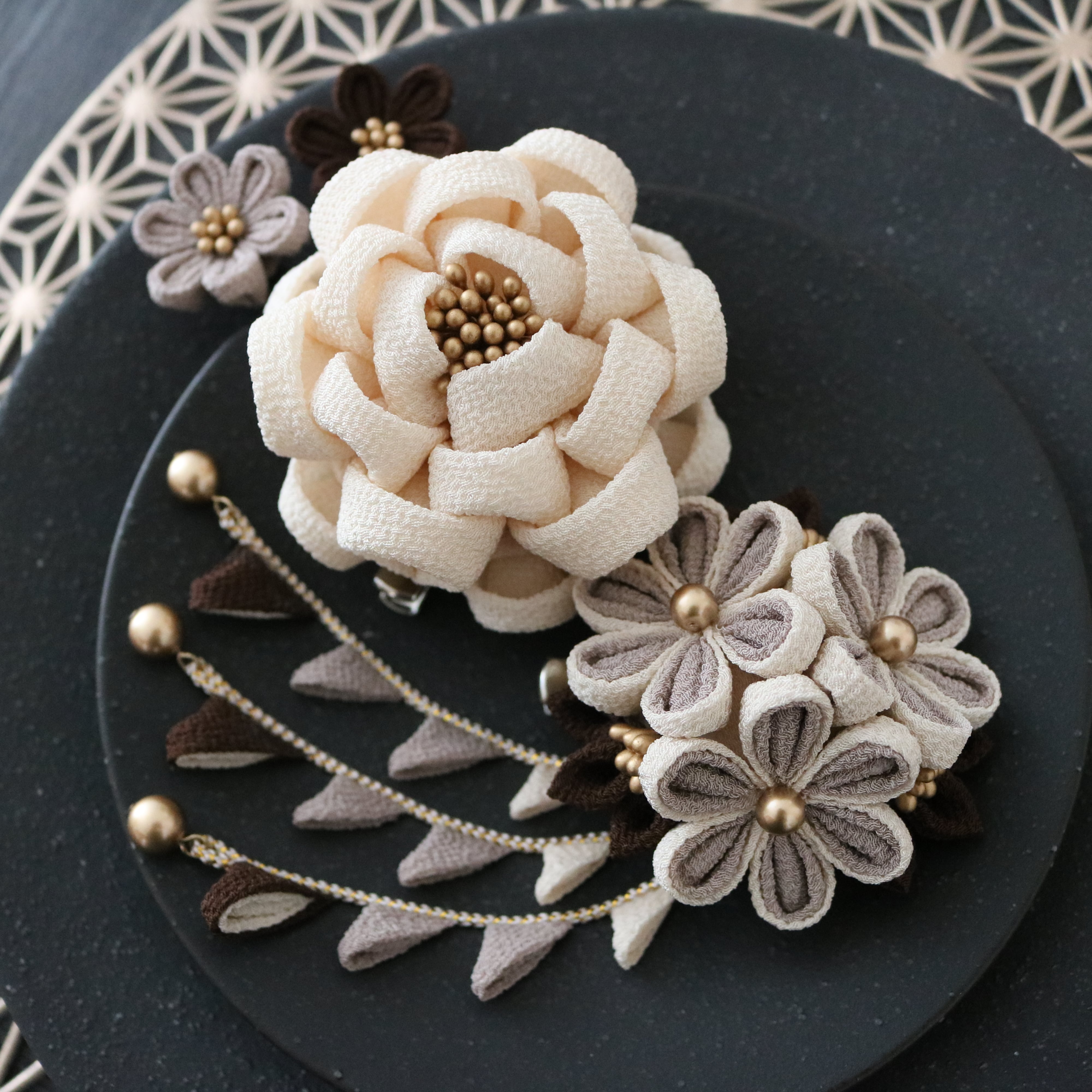 小花Uピンのセットで色々とアレンジの出来るかんざしを作りました。