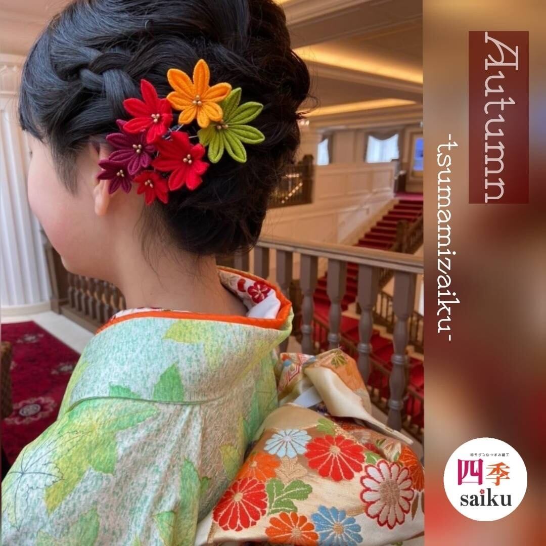 紅葉は【黄緑】【山吹】【赤】【牡丹】の組み合わせで紅葉していく秋のグラデーションをイメージしました。