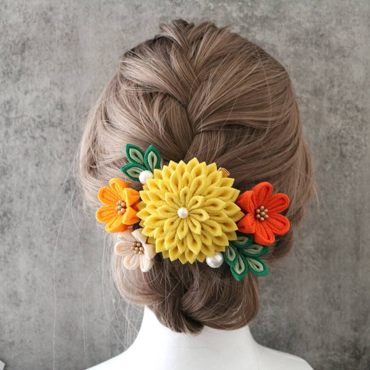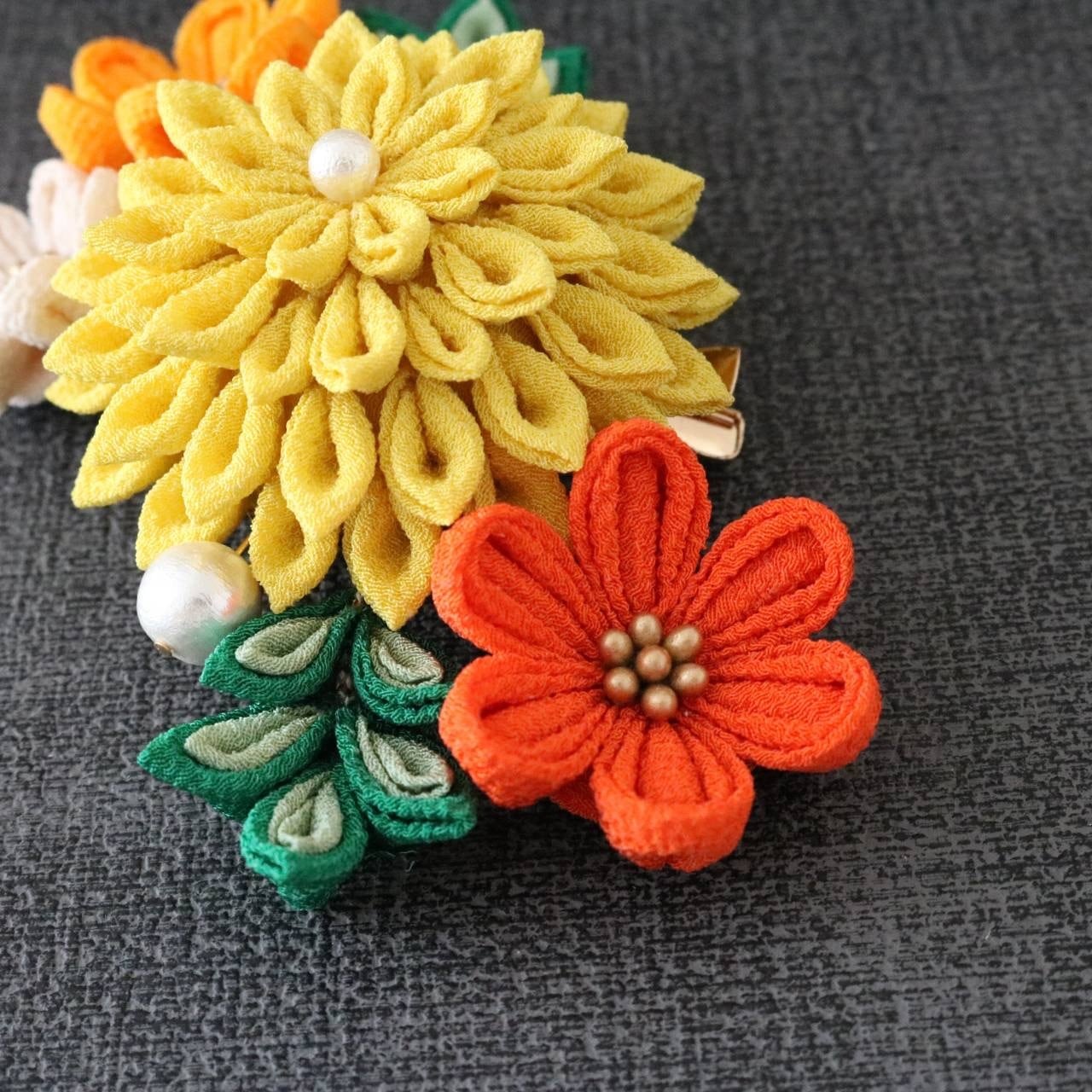 大サイズ*イエロー*レトロなヘアクリップ*つまみ細工
